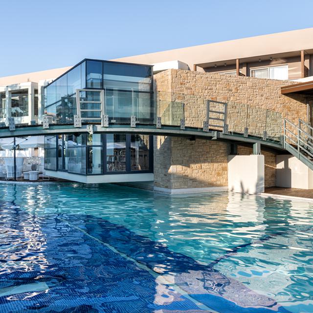 Vanaf het moderne Hotel Minos Mare Royal, wandel je zo het schitterende zandstrand op dat pal voor de deur ligt. Het hotel ligt in het centrum van Plantanias, waardoor er na een klein stukje lopen al winkels en restaurants te vinden zijn. Het hotel heeft een fijne serene sfeer, mede doordat het uit twee gebouwen van slechts twee verdiepingen bestaat. Het hotel heeft een mooie tuin met een heerlijk verkoelend zwembad en palmbomen, die voor dat echte vakantiegevoel zorgen. Er zijn verschillende stijlvolle bars en restaurants te vinden, waaronder restaurant Poseidon, de ultieme plek om van unieke Mediterane gerechten te proeven. Dineren aan het strand terwijl je geniet van de zonsondergang en de rustgevende geluiden van de golven in zee.