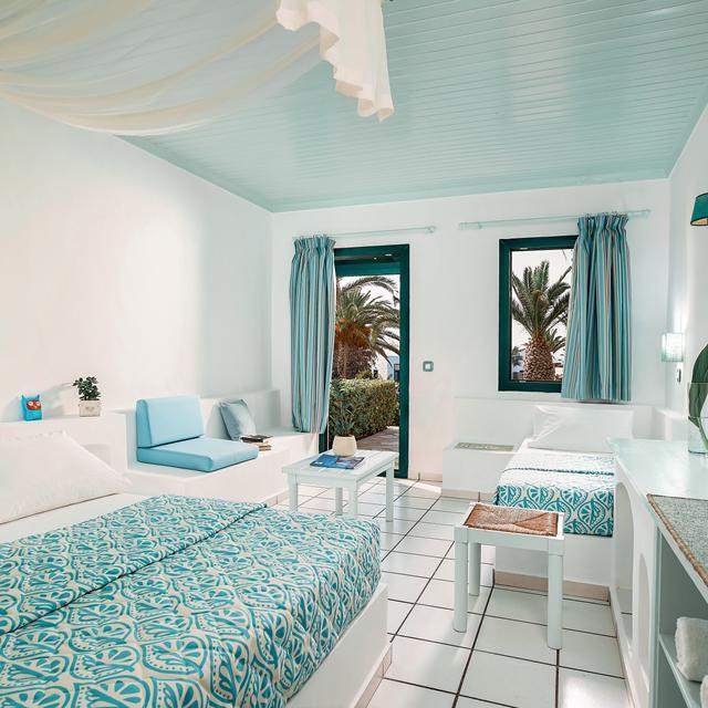 Aan de rand van het centrum van Anissaras ligt het familiehotel Hotel Mitsis Cretan Village Beach. Een ideale ligging want ook het zandstrand ligt hier pal voor de deur.