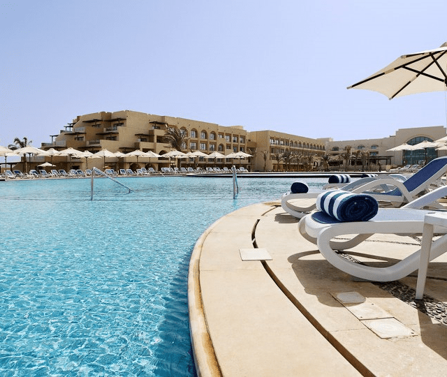 Hotel Mövenpick Waterpark Resort Soma Bay ligt direct aan een 350 meter lang privéstrand. Dit luxe hotel heeft drie grote zwembaden, dus aan waterpret geen gebrek tijdens deze vakantie. Voor pure ontspanning bezoek je de spa van het hotel, waar je een massage kunt nemen of kunt ontspannen in de sauna en het stoombad.