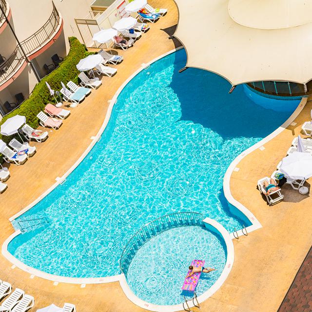 Hotel MPM Orel ligt aan de gezellige boulevard van Sunny Beach. Met aan de ene kant het fijne zandstrand met gratis zonnebedjes en parasols. En aan de andere kant, het bruisende centrum van Sunny Beach.