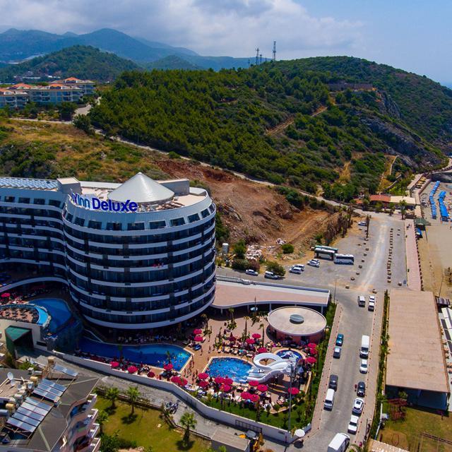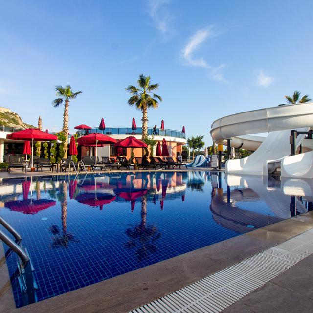 Het populaire Hotel NoxInn Deluxe ligt recht tegenover strand en zee en is de ideale locatie als je samen met je gezin op vakantie gaat naar Turkije. Zo zijn er 4 zwembaden, een apart kinderzwembad en 5 waterglijbanen. Waterpret gegarandeerd! Het centrum van Konakli bevindt zich op 3 kilometer afstand. Hier vind je allerlei kleine winkeltjes waar je leuke Turkse souveniers kan kopen.