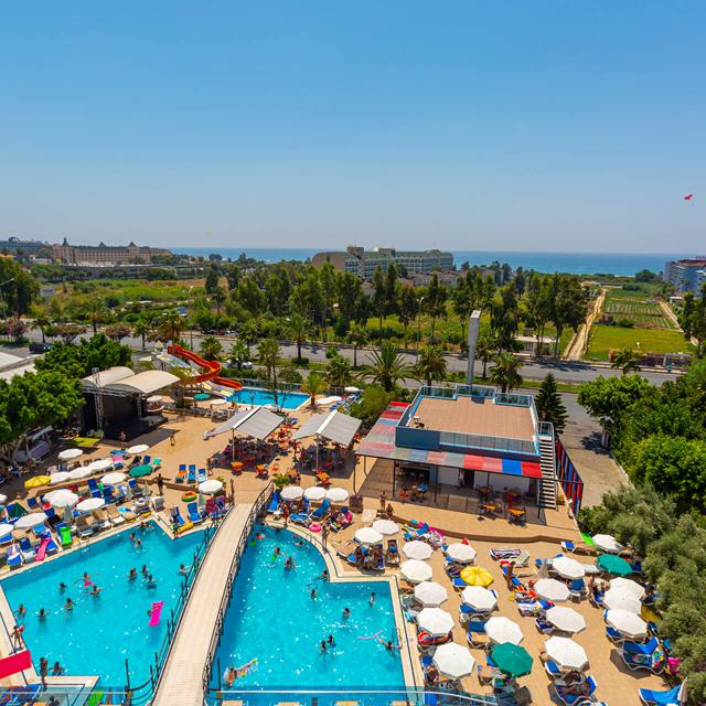 Duik in één van de 6 zwembaden van het hotel en roetsj van één van de glijbanen, oftewel gegarandeerd waterpret! De kinderen vermaken zich bij de miniclub terwijl tot rust komt in het wellnesscenter. Het privéstrand van het hotel bevindt zich op nog geen 500 meter van het hotel vandaan. Heb je geen zin om te lopen? Elk uur rijdt er een gratis shuttlebus van het hotel naar het strand. Drink gezellig een drankje bij de strandbar tot de zon ondergaat en wandel op je gemak terug naar het hotel.