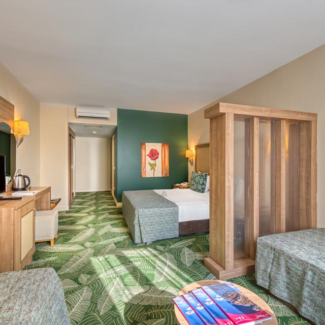 Met 6 restaurants en 5 bars drink en eet je de hele vakantie gevarieerd. Internationale gerechten in het buffetrestaurant, traditioneel Turks of een heerlijke pizza in het Italiaanse restaurant..voor ieder wat wils! De moderne en ruime kamers zijn voorzien van alle nodige faciliteiten en zorgen ervoor dat jij na een goede nachtrust de dag weer fris kunt beginnen. Fijne vakantie!