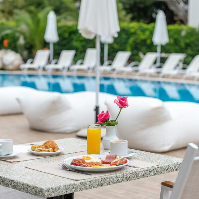 In hotel Palm Beach voelt iedereen zich direct op zijn gemak. Er heerst een hele aangename sfeer waardoor je nooit meer naar huis wilt! Het centrale punt van het hotel is het zwembad, genieten op een ligstoel, een stukje zwemmen of een drankje drinken aan de tropische poolbar. Zo kom je de dag wel door. Ben je meer een strandtype, dan hoef je niet ver te lopen, je bent er zo. In de avonduren wordt er vaak iets leuks georganiseerd zoals een Griekse avond met live muziek of een tropische avond met lekkere cocktails. Geniet er van!