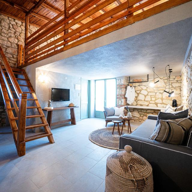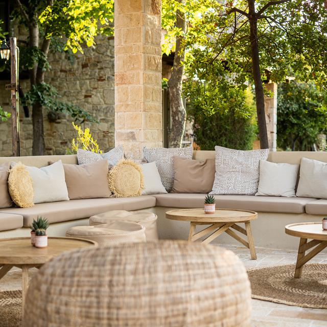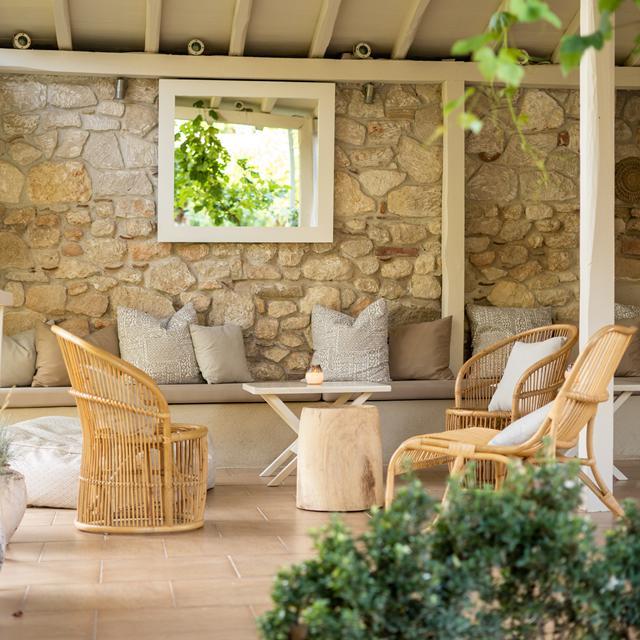 Het hotel krijgt een sfeervolle uitstraling door de traditionele bouwstijl, waarbij veel steen is gebruikt. Deze stenen muren zie je zelfs terug in de karakteristieke kamers die als bungalows door de prachtige tuin gelegen zijn. Maar de bouwstijl is niet het enige traditionele wat op dit charmante plekje te vinden is. Ook de gerechten die je bijvoorbeeld bij het ontbijt kunt proeven zijn typisch Grieks, gemixt met Amerikaanse lekkernijen, zoals tiropita, prasopita en peinirli. In het restaurant kun je van culinaire hoogstandjes genieten die met verse ingrediënten uit eigen tuin bereid worden.