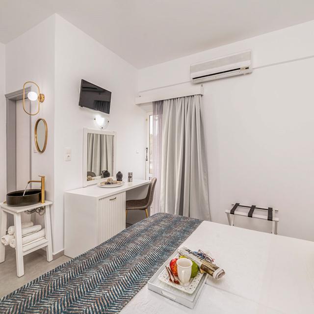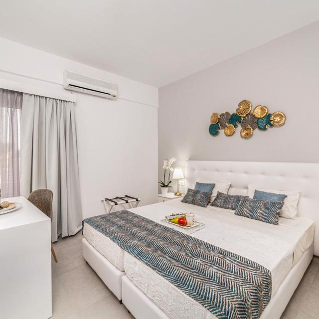 De authentieke kamers bieden een ultiem comfort aan en zijn voorzien van fijne faciliteiten. Hier voel je echt de Griekse sfeer in terugkomen. Via het balkon heb je een prachtig uitzicht op het zwembad of de omringende bergen. Heerlijk om je aan het einde van de dag in terug te trekken.