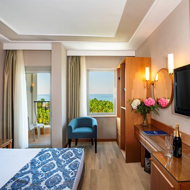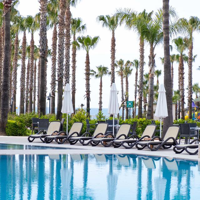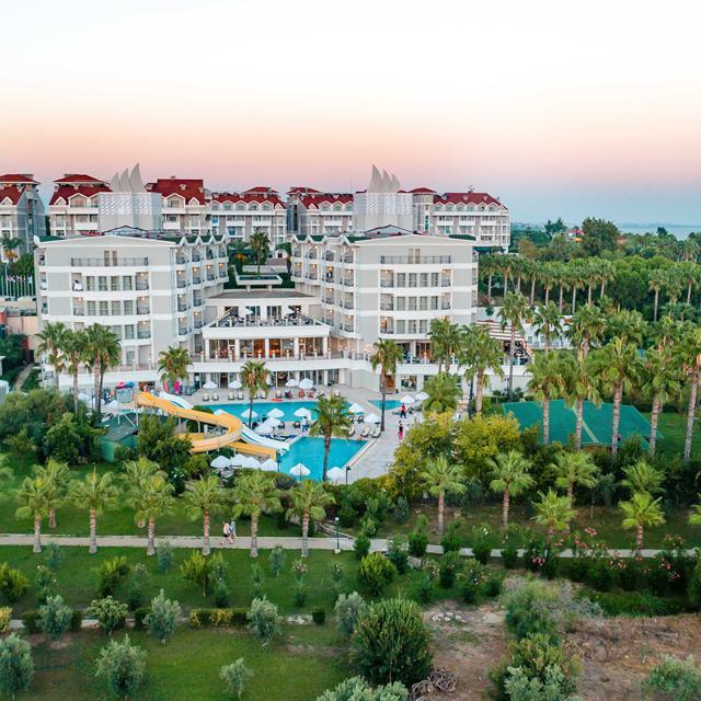Hotel Royal Atlantis Beach in Side is de ideale plek voor een geslaagde vakantie. Het complex bevindt zich direct aan het strand en is opgebouwd uit verschillende delen. Het hotel heeft een prachtig zwembad met waterglijbanen, hamam, sauna, een tennisbaan en een fitnessruimte. Je kunt heerlijk zonnen in de aangelegde hoteltuin of aan het strand direct achter het hotel ligt. Relaxen in een gemoedelijke en gastvrije sfeer, dat is Hotel Royal Atlantis Beach!