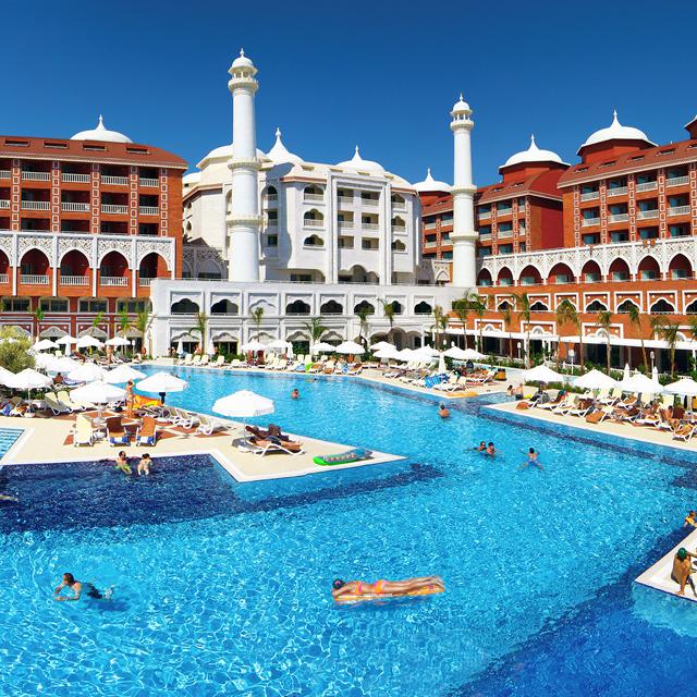 In dit hotel waan je je in een Indisch sprookje. Dit wordt ook doorgetrokken in de prachtige ruime kamers. Het hotel wordt omringd door een schitterende tuin, waar drie zwembaden in liggen. Onwijs leuk voor de kinderen is het aquapark en het pretpark! Dit aqua- en pretpark ligt aan de voorkant van het hotel en is gescheiden van de andere zwembaden. Hierdoor lig je bij de overige zwembaden wat rustiger. Ver voor het strand hoef je ook niet te lopen. Dit hotel ligt namelijk direct aan het strand.