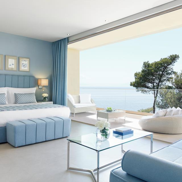 De kamers liggen verspreid in bungalows van twee verdiepingen hoog en worden omgeven door weelderige tuinen. Ze zijn stuk voor stuk schitterend ingericht met witte en lichtblauwe tinten, ramen van de grond tot het plafond en heerlijke boxspring bedden. Uitrusten gaat hier vanzelf en je laadt weer helemaal op.