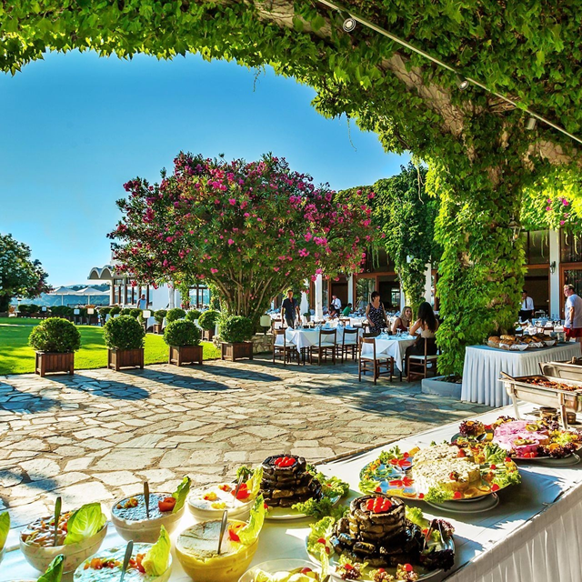 Rondom het mooie zwembad staan heerlijke ligbedden met parasols. Onder de bomen kun je tijdens een warme dag de schaduw opzoeken en een verfrissend drankje bestellen bij de bar. Zoek een leuk plekje op het terras en geniet van de heerlijke gerechten die de koks met veel enthousiasme voor je klaarmaken.