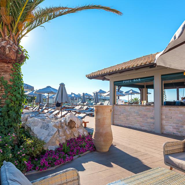Er is veel aandacht besteed aan de indeling van het hotel. Alles ligt in een mooie en goed onderhouden tuin. Ook het heerlijke zwembad ligt er uitnodigend bij. Rondom staan er bedjes met parasols en hier is het heel fijn om te genieten in het zonnetje. Bij de gezellige bar worden er verfrissende drankjes ingeschonken en maakt de ober graag een praatje. De kinderen vermaken zich prinsheerlijk bij het aparte kinderbadje waar een leuk speeltoestel in het water staat. Ook ligt de mini-club hier in dit gedeelte van het hotel.