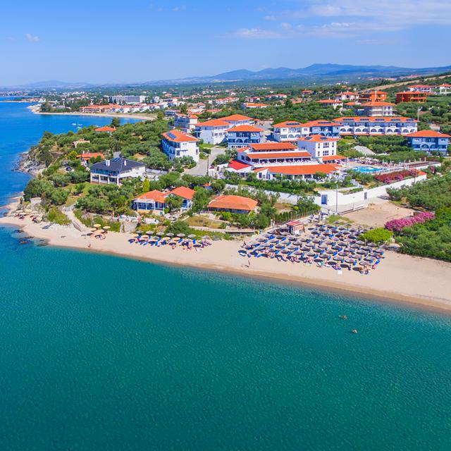 De leuke ingerichte kamers, met veel comfort, liggen verspreid over de prachtige tuin of aan de voorkant met uitzicht over het strand en de baai van Toroneous. Onlangs zijn er veel faciliteiten gerenoveerd die voldoen aan de trends en wensen van deze tijd.