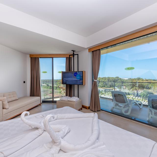 Hotel Sorgun Akadia Luxury is een heerlijk vakantieoord waar je onbezorgd kunt genieten. Het is gelegen tussen de Manavgat rivier en Titreyengöl en wordt omringd door natuur. Aan de ene kant heb je de rivier. Aan de andere kant de zee en de pijnbossen. Daarnaast verblijf je hier op basis van all inclusive en dit betekent dat je je portemonnee eigenlijk gewoon kunt thuislaten. Er is hier namelijk heel veel inbegrepen. Drankjes en snacks zijn 24/7 beschikbaar en zelfs de inhoud van de minibar is niet tegen betaling. Hoe fijn is dat? Ook fijn zijn de vele faciliteiten die dit resort aanbiedt: er zijn vijfzwembaden, waarvan een met spectaculaire waterglijbanen en er is een spa met sauna en Turks stoombad. Zin om lekker actief te doen? Daar weet het animatieteam wel raad mee! Van beach volleybal tot taici, er wordt van alles georganiseerd.