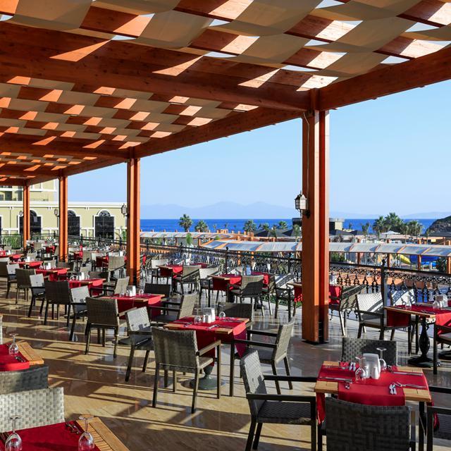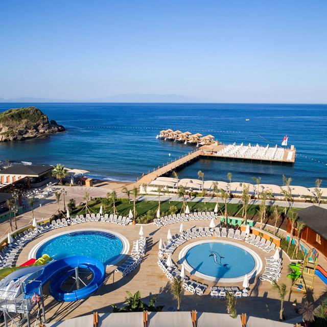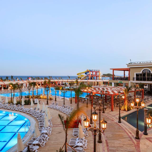 Op ongeveer drie kilometer van het prachtige Özdere ligt Hotel Sunis Efes Royal Palace Resort. Het goudgele zandstrand ligt hier pal voor de deur en samen met het groot zwembad met zonneterras is dit de perfecte plek om te relaxen. Natuurlijk draagt de spa hier ook aan bij, waar je van verschillende ontspannings- en schoonheidsbehandelingen kunt genieten. Wanneer je je uit wilt leven in het state-of-the-art fitnesscentrum of actief bezig wilt zijn tijdens een toernooi of andere sportieve bezigheid kan dat ook. Voor kinderen is er een leuke miniclub. Op culinair gebied is het ook genieten in dit mooie hotel. Naast het gevarieerde buffet in het hoofdrestaurant zijn er verschillende à-la-carte restaurants te vinden en kun je ook overdag terecht voor heerlijke snacks.