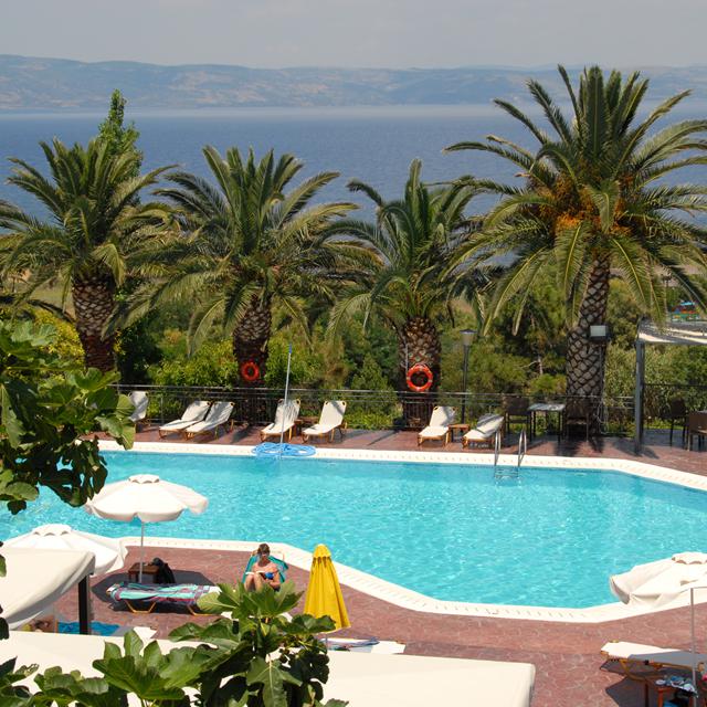 Het populaire en zeer goed gewaardeerde Hotel Sunrise is een heerlijk hotel, met een fantastische ligging en een hoog serviceniveau. Vanwege de ligging op een heuvel zijn de uitzichten over zee spectaculair te noemen. Zeker als de zon ondergaat is het handig om een camera bij je te hebben; wat een prachtig gezicht is dit! Niet voor niets is dit ook een plek waar de bekende Griekse schrijvers A. Eftaliotis and I. Venezis inspriratie hebben opgedaan. Maar het is bijna met geen pen te beschrijven hoe mooi en fijn dit plaatje is; je moet het eigenlijk gewoon ervaren!