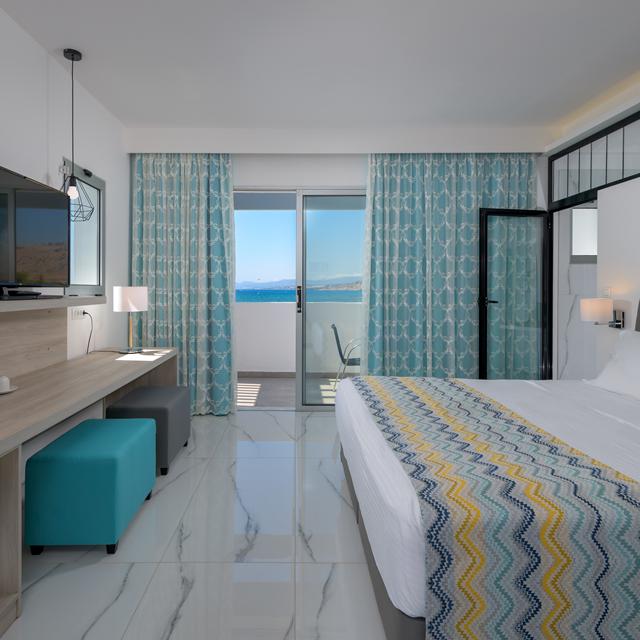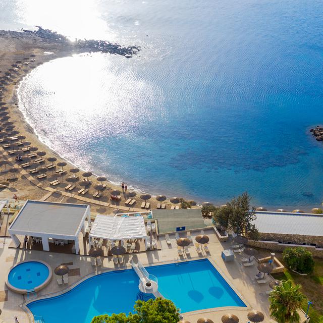 Hotel Sunrise is een waar paradijsje dat direct aan het strand en een beschutte baai ligt. Je kijkt uit over het kristalheldere water, terwijl je op je ligbed geniet van het zonnetje. Het zandstrand loopt langzaam af; dat is met kinderen ideaal! Alles bij elkaar is het een mooie combinatie van rust en een prachtige ligging dat zorgt voor dat echte vakantiegevoel. Het centrum van het levendige en gezellige Pefki ligt op ongeveer 6km van het hotel. Hier volgen de winkeltjes en barretjes elkaar op dat maakt het een leuke plaats om eens te bezoeken.