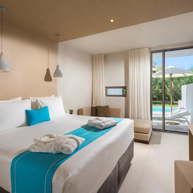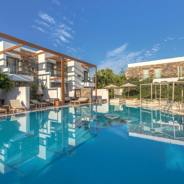 De hotelkamers zijn stijlvol, modern en ruimtelijk. Vanuit je kamer heb je uitzicht op zee of op het binnenland van Kreta en sommige kamers hebben zelfs een privé zwembad. Er zijn diverse restaurants waar de lekkerste gerechten worden geserveerd.