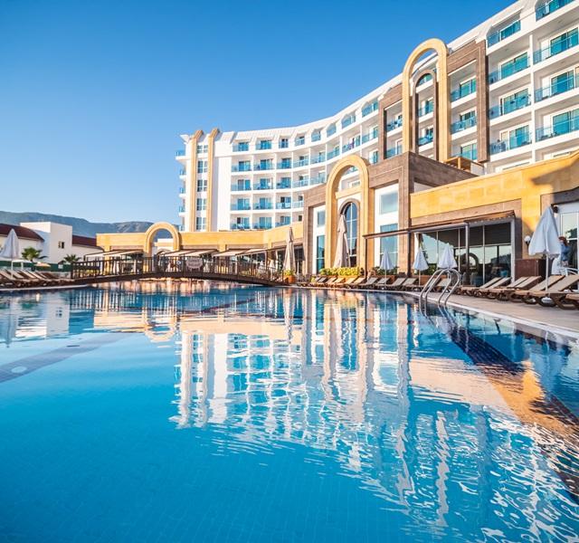 Ontdek zelf de charme en vriendelijke sfeer van Hotel The Lumos Deluxe Resort & Spa, een ultra all inclusive hotel. Dit 5-sterren hotel heeft fijne faciliteiten voor jong en oud, dat klinkt goed! Er zijn verschillende zwembaden om rondom lekker te relaxen maar ook voor uren waterpret. Voor verschillende leeftijden zijn er glijbanen waar iedereen zijn energie kwijt kan. Wil je het even wat rustiger aan doen, bekijk dan eens het wellness programma en laat je verwennen van top tot teen. Tenslotte wordt er iedere dag voor lekker eten gezorgd in het restaurant. Dit wordt een topvakantie!