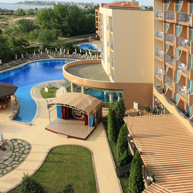 In dit sprankelende hotel is voor jong en oud altijd wel iets te beleven. Dans, sport en speel bijvoorbeeld mee met het animatieteam of je kunt je uitleven op de vijf glijbanen. Je kunt er natuurlijk ook altijd voor kiezen om gewoon rustig in de zon weg te dromen op een zonnebedje en voor de nodige verkoeling een duik te nemen in het grote zwembad. De kleine vakantieganger kan vriendjes maken in de miniclub en ’s avonds helemaal uit zijn dak in de minidisco. Volwassenen kunnen ’s avonds onder het genot van een drankje genieten van de leukste shows.