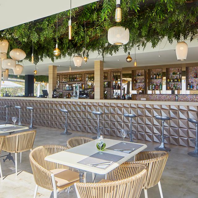 In het hotel blijven kan ook, want er is een prachtig zwembad en een mooi aangelegd hip terras. Hier is het de hele dag goed toeven. Er is ook een wat hoger gelegen terras dat een nog mooier uitzicht heeft over zee en de kust. Naast het zwembad zit de leuke, ronde bar waar de barman graag jouw lievelingsdrankje serveert. Ook als je tussen de middag trek hebt in wat lekkers, bestel je dit buiten op het terras, maar dan bij de snackbar, handig!