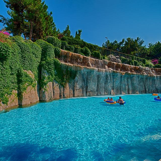 In dit groots opgezette hotel is het voor zowel jong als oud genieten. Er zijn maar liefst 11 zwembaden, het is dus aan jou waar je elke dag je handdoek neerlegt. Er is zelfs een aquapark aanwezig met maar liefst 11 glijbanen, voor jong en oud, en een 300 meter lange raftingbaan. Ook is er een enthousiast animatieteam aanwezig dat overdag leuke activiteiten organiseert en ’s avonds spectaculaire shows opvoert. Er is in het hotel zelfs een discotheek aanwezig en worden er gezellige feesten georganiseerd, zoals een schuimparty.