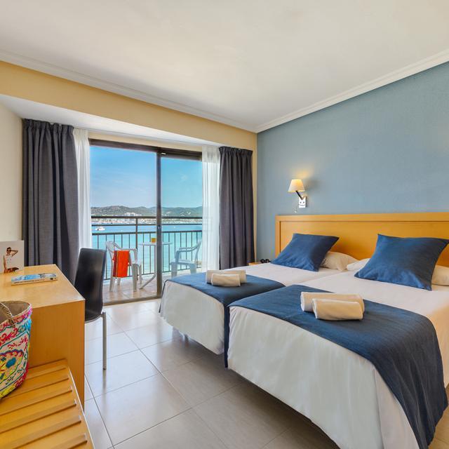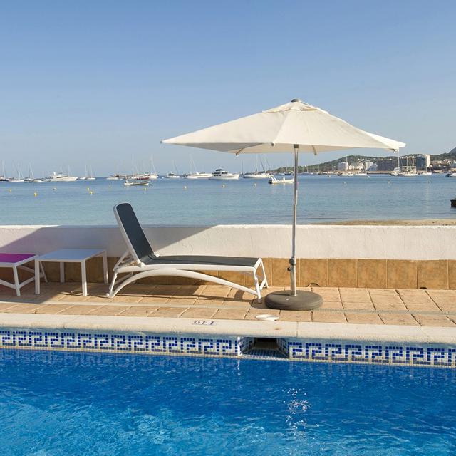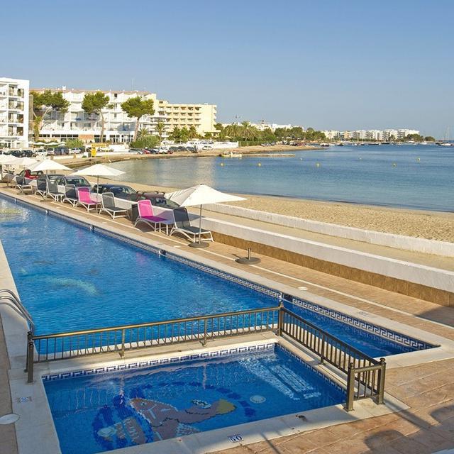 Hotel Vibra S’Estanyol ligt vrijwel aan het strand, perfect! Na een paar passen sta je dus al met je voeten in het zand. Ook is er een zwembad voor een frisse duik. En een terras waar je kunt genieten van het zonnetje én van het schitterende uitzicht over de baai van San Antonio Bahia.