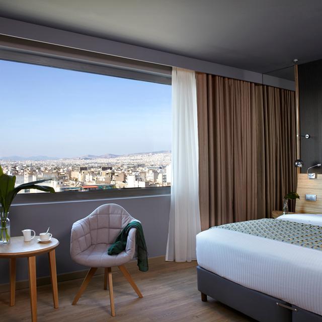 Hotel Wyndham Grand Athens is een modern hotel met een fantastisch uitzicht over heel Athene, inclusief de Acropolis. Dit is een oude citadel gelegen op een rots boven de stad. Op 20 meter afstand zit het metrostation Metaxourgeio, van waaruit jouw stedentrip door deze bijzondere stad kan beginnen!
