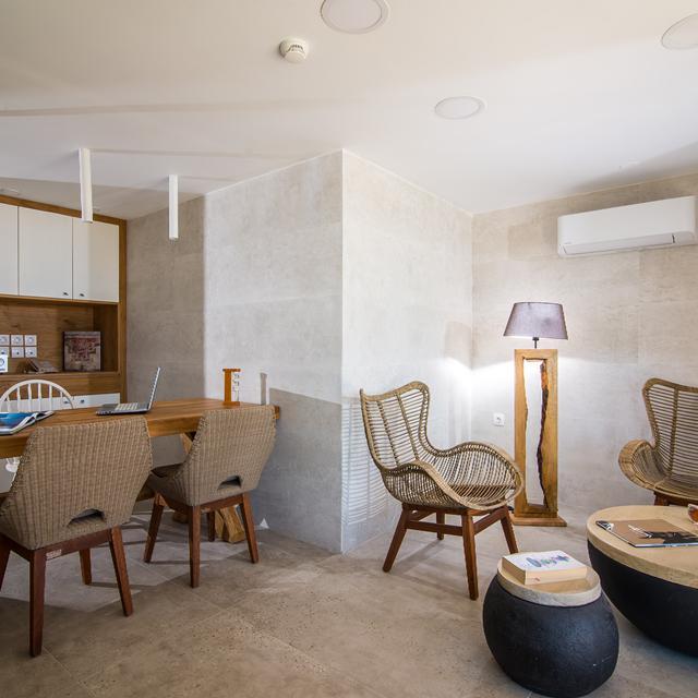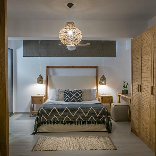 De appartementen van Irida zijn modern ingericht met veel natuurlijke elementen en bieden een comfortabel verblijf. Alles is met zorg uitgezocht, van het beddengoed tot en met het meubilair. Onder je pergola op het balkon of terras is het goed vertoeven met een lekker kopje koffie.