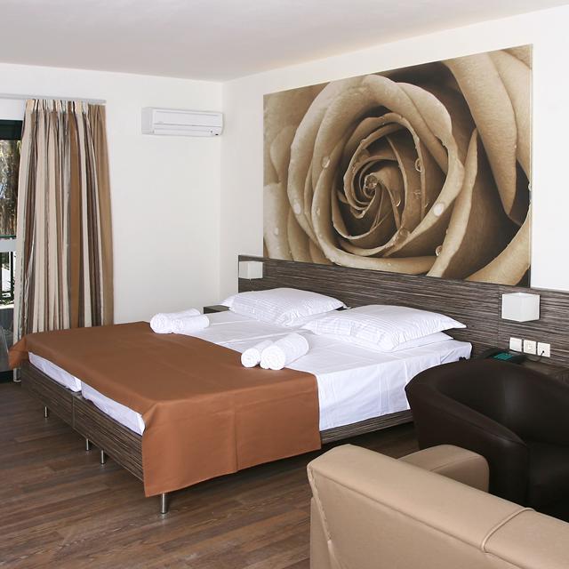 Het witte zandstrand beschikt over comfortabele ligbedjes waar je lekker kunt wegdromen onder de Griekse zon, of neem een verkoelende duik in het buitenzwembad. Na afloop kom je helemaal tot rust in het uitgebreide wellnesscenter.