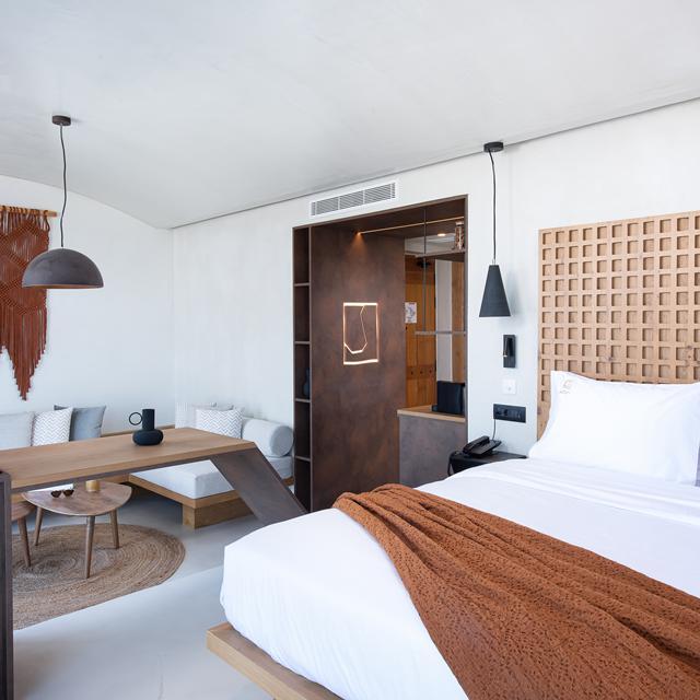 De moderne suites hebben een pracht van een ligging en zijn perfect voor een teruggetrokken verblijf. Welke suite je ook kiest, je geniet altijd van een vrij uitzicht over het groene landschap. Niet alleen van buiten, maar ook van binnen is de minimale inrichting een lust voor het oog. De elegante inrichting met aardse tinten en de natuurlijke materialen zorgen voor een intens en rustige nachtrust. Een suite met privézwembad geeft net dat extra gevoel van luxe.