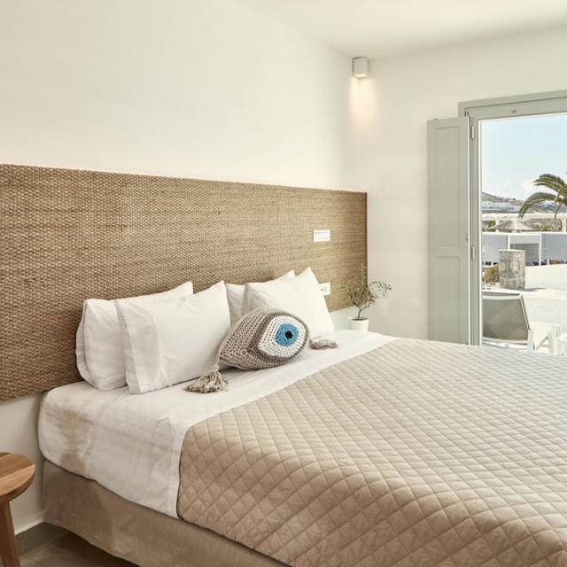 Manoulas Beach Hotel ligt op slechts een klein stukje wandelen van het strand. Na een paar passen kun je je handdoek dus al uitrollen en genieten van zon en zee. Ook is het mogelijk om te relaxen op het mooie, modern aangelegde terras. Nip lekker van een fleurige cocktail en neem af toe een duik in het zwembad. Heerlijk! En wil je graag naar Mykonos-stad, dan kan dat heel gemakkelijk met de bus die voor de deur stopt. In alle rust van een kopje koffie of ander drankje genieten doe je ’s avonds in de comfortabele lounge. Daarna val je vast als een blok in slaap in je stijlvol ingerichte, moderne kamer. Fijne vakantie!