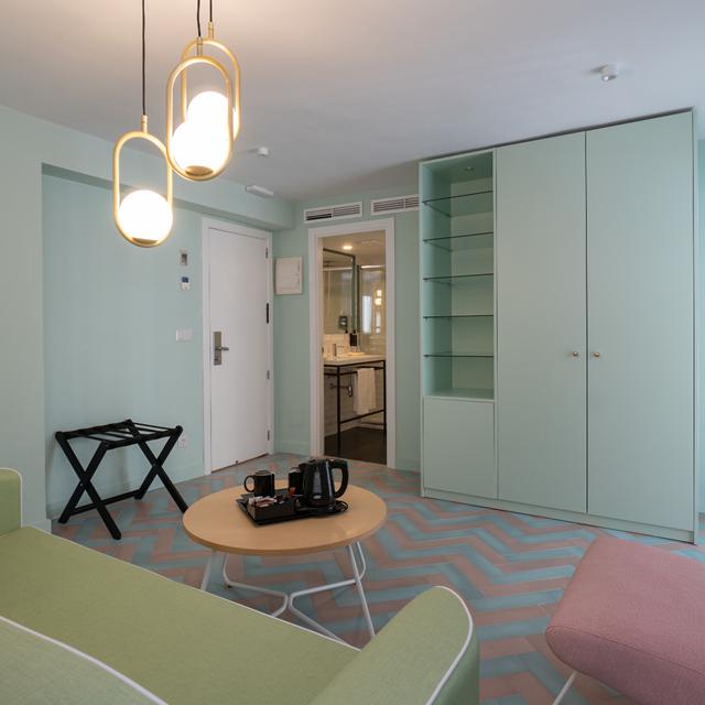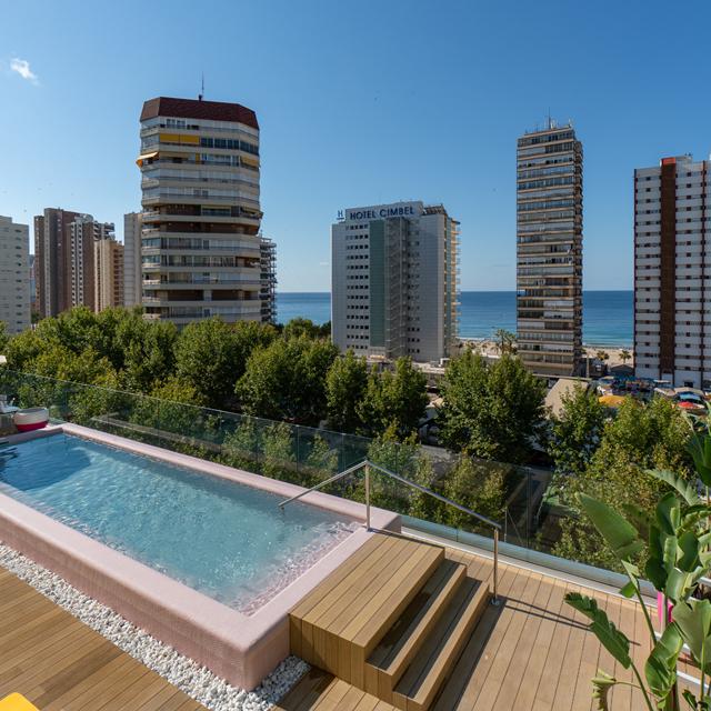 Het mooi aangelegde zwembad van het hotel zit op de zesde verdieping, waardoor je vanaf het zonneterras een prachtig uitzicht over zee hebt. Wat een fijne plek is dit! Hier wil iedereen de hele dag wel doorbrengen. Lekker ontspannen op een ligbedje in het zonnetje of onder de parasol. Voor sportievelingen is er een fitnessruimte, maar een lange wandeling over de gezellige boulevard maken kan natuurlijk ook.