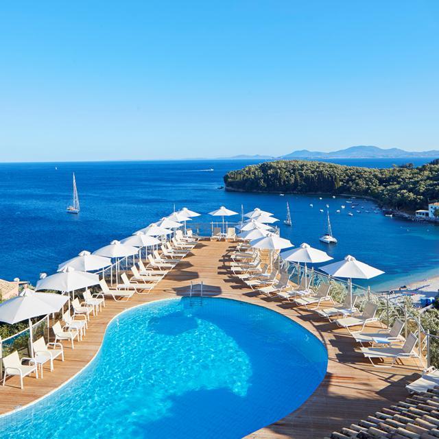 San Antonio Resort maakt indruk met een spectaculair uitzicht over de Ionische Zee en het kleine dorpje. Dit romantische hotel voor alleen volwassen gasten ligt midden tussen de eeuwenoude olijfbomen en aan het strand. De hotelkamers zijn niet alleen mooi maar ook ruim en modern ingericht en bieden je een fijne nachtrust. Strijk neer op een bedje, bestel een lekkere cocktail, kom lekker tot rust aan de rand van het zwembad en geniet van een welverdiende vakantie!