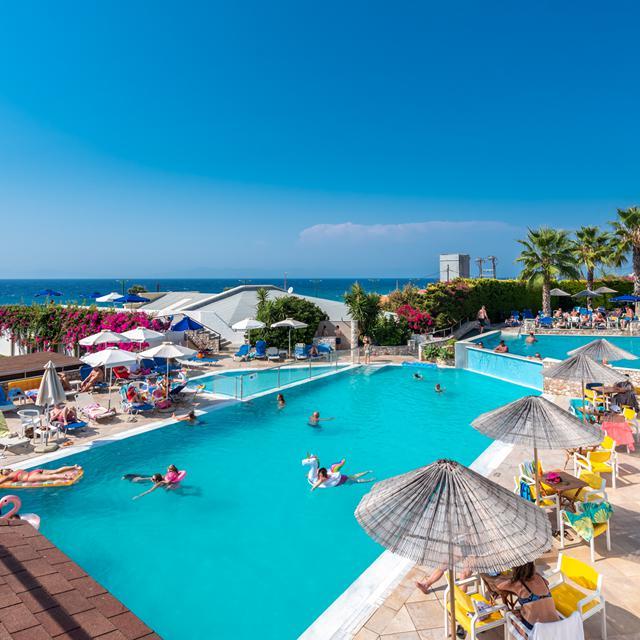 Hotel Sirene Beach is een heel geliefd vakantieadres! Het is een kleinschalig hotel dat direct tegenover het strand ligt; ideaal voor als je graag geniet van zon en zee. Nog meer vitamine D opdoen kan ook op een ligbedje bij het zwembad. Heerlijk om te relaxen met een goed boek of om even weg te dromen. Zin in een drankje? Neem plaats op het gezellige terras en geniet van het uitzicht terwijl het vriendelijke personeel je op je wenken bedient. Gedurende je verblijf in dit leuke hotel, maak je gebruik van het all inclusive programma. Alle maaltijden, drankjes en snacks zijn inclusief.