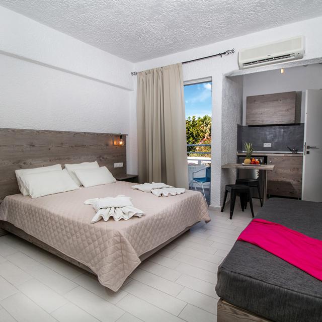 De sfeervolle studio’s zijn ingericht met lichte kleuren en sfeervolle kleuraccenten. Rondom het speels gevormde zwembad staan heerlijke ‘ligkussens’, waar je na een dag vol avonturen heerlijk neer kunt ploffen met een drankje. Begin de dag goed en reserveer een lekker ontbijt bij, dan start je gegarandeerd fantastisch want het ontbijtbuffet is overheerlijk. De persoonlijke touch van de chef proef je hier duidelijk in terug.