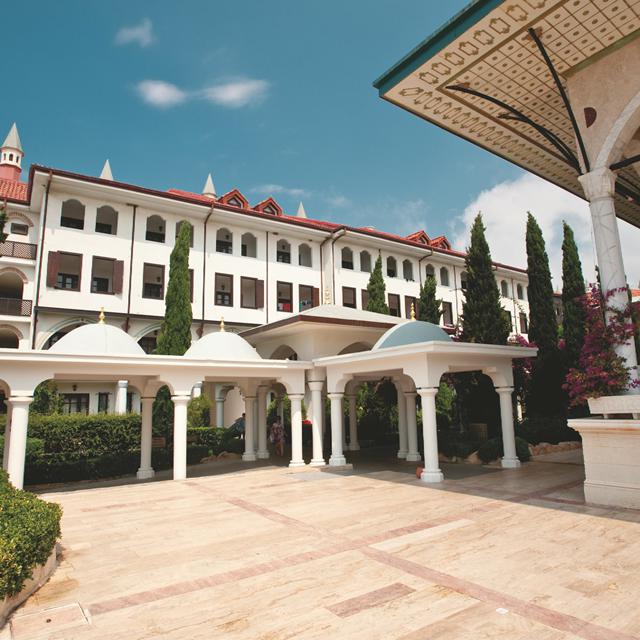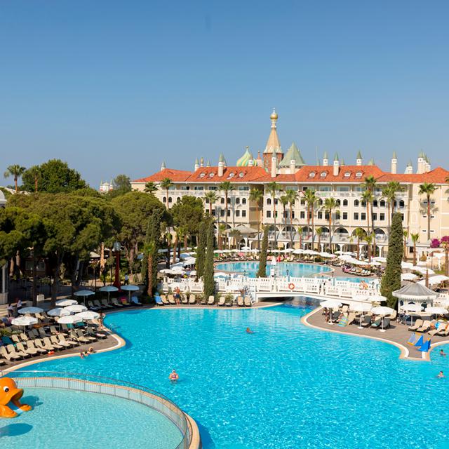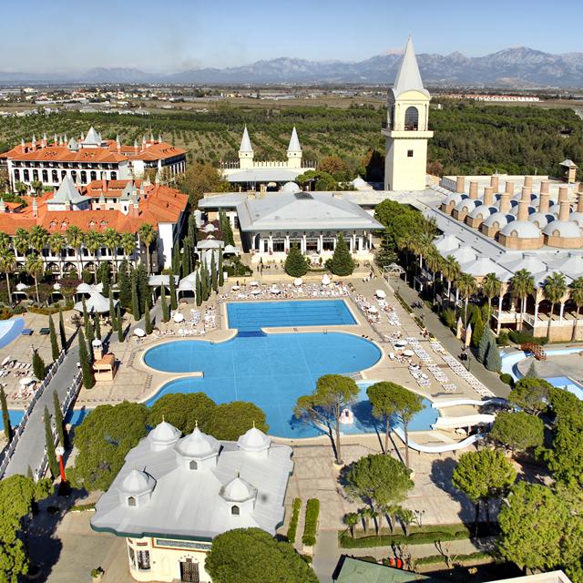 Swandor Hotel & Resort Topkapi Palace is een groots opgezet complex in Kundu. Het Resort is geïnspireerd op het indrukwekkende Topkapi Paleis in Istanbul. Van binnen tot buiten is de decoratie tot in de puntjes verzorgd en lijkt het soms alsof je echt door het paleis in Istanbul loopt. Andere gebouwen bij het resort zijn ook geïnspireerd op monumenten in Istanbul. Zo kan je een drankje halen in de nagemaakte moskee Hagia Sophia. Het centrum van Kundu vind je al op slechts 3 kilometer. Verder hoef je maar een paar meter te lopen om het heerlijke strand te bereiken.