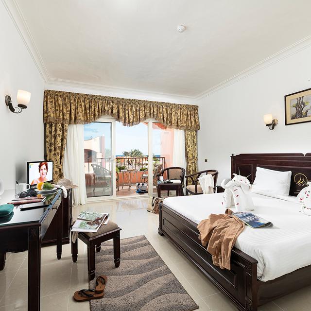 Het hotel ligt op een rustig plekje, tussen de Sahara en de kristalblauwe zee. De omgeving is zo rustig, dat als je goed luistert, je de zee kunt horen ruisen en dat het strand vlak voor de deur, speciaal en alleen geschikt is voor gasten van het hotel. Om in de ontspanningsmodus te blijven, biedt het hotel alle voorzieningen die je nodig hebt voor een relaxte vakantie. Zo vind je er bijvoorbeeld een minisupermarkt, een strandbar, twee restaurants en een souvenirwinkeltje. Schuif gezellig aan in de bedouinentent en proef de Egyptische keuken. Wie zin heeft in wat meer actie kan met een duikbril de zee in of zich wagen aan een potje beachvolley.