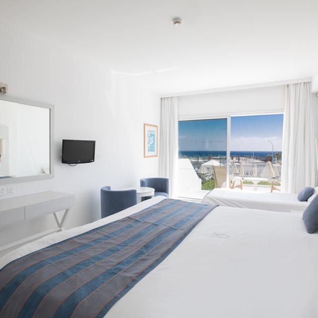 Het hotel heeft modern ingerichte kamers verspreid over 3 verdiepingen. Een aantal kamers biedt uitzicht op het achterland, maar een groot deel heeft uitzicht op de diepblauwe zee. Aan families is gedacht: er zijn speciale familiekamers met 2 aparte slaapkamers en plek voor 4 personen. Verder beschikken alle kamers over hedendaags comfort en een fijn balkon met zitje.